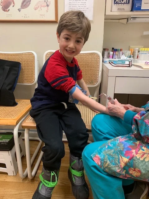 Dr. Teich’s office brings smiles to everyone’s face (even a young boy who is having his blood taken)